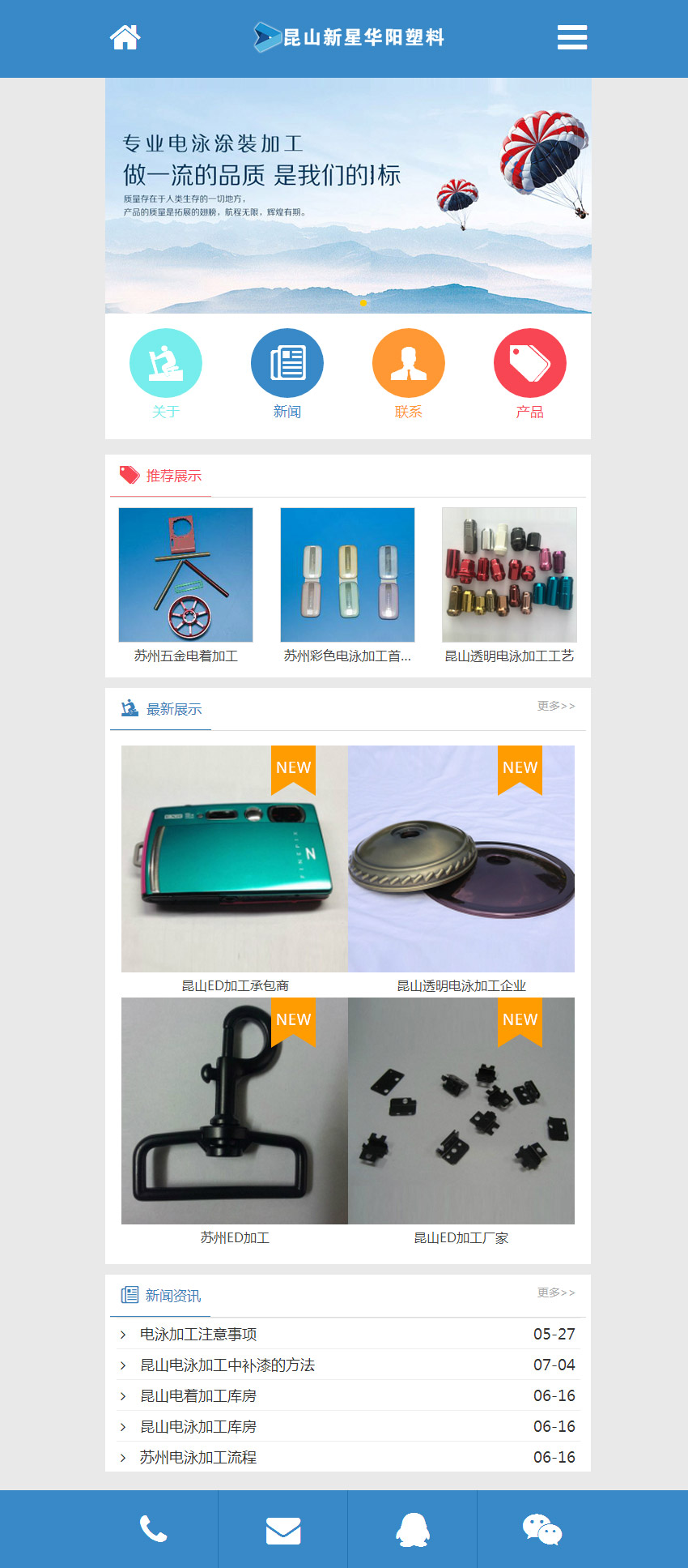 昆山新星華陽塑料有限公司始建于2003年12月,本著“技術進步、管理嚴格、品質卓越、服務優良”的 經營理念,不斷開拓創新發展。目前已擁有員工300人,其中技術、質量、企業管理方面專業人員30多人 ,廠房面積6000多平方米,擁有固定資產4000萬元,專業從事黑色陰級電泳及彩色電泳加工、電著加工 、ED加工最具優勢。現已成為昆山市最大的電泳加工企業之一。