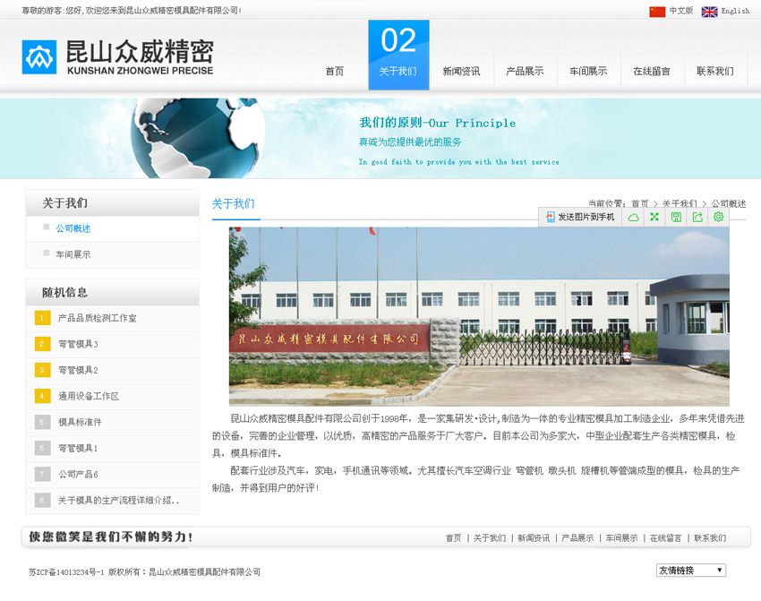 昆山眾威精密模具配件有限公司創(chuàng)于1998年,是一家集研發(fā)設(shè)計(jì),制造為一體的專業(yè)精密模具加工制造企業(yè),多年來憑借先進(jìn)的設(shè)備,完善的企業(yè)管理,以優(yōu)質(zhì),高精密的產(chǎn)品服務(wù)于廣大客戶。目前本公司為多家大,中型企業(yè)配套生產(chǎn)各類精密模具,檢具,模具標(biāo)準(zhǔn)件。