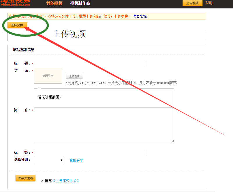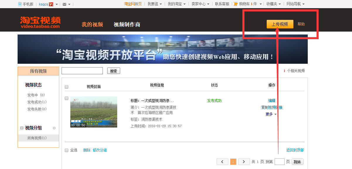 登錄地址:http://ugc.taobao.com/輸入淘寶的 用戶名和密碼登陸后 點擊上傳視頻第二步:選擇文件 填寫基本介紹第三步: 保存并發布,等待審核,審核后 會是發布成功。 一般30分鐘 會審核通過 很快的。發布成功后 點擊上圖中的圖片 看到播放;點擊分享 拷貝html代碼回要錄入的網站 把代碼放到億聯網平臺里面去。在代碼編輯模式的時候 操作; 返回 然后 看到 再保存 就可以了